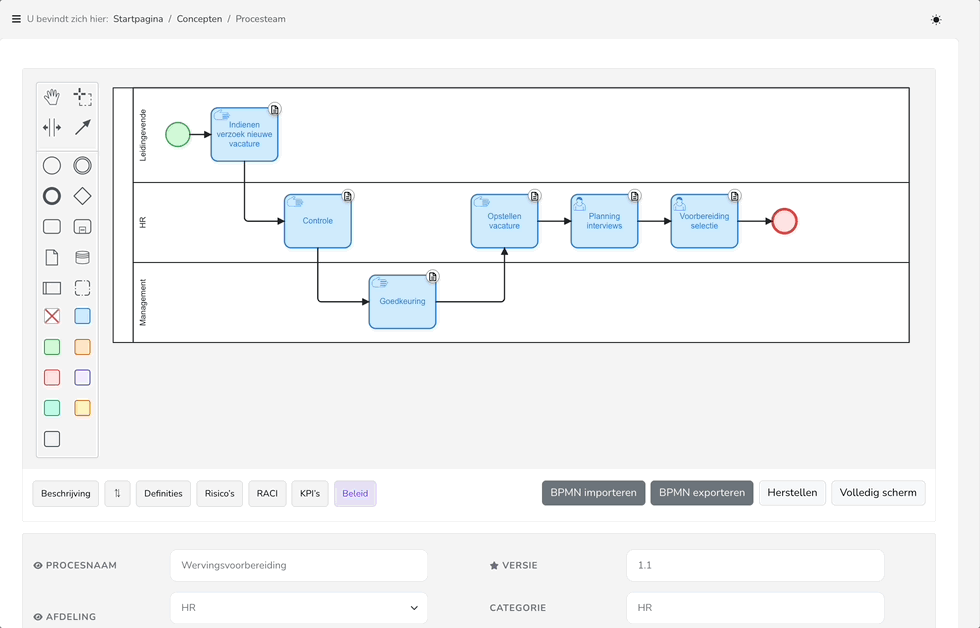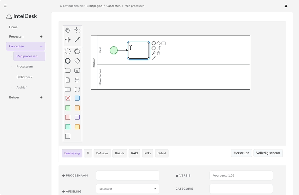 Voeg extra informatie toe per proces, zoals: definities, risico’s, KPI’s, RACI's of beleidskeuzes.