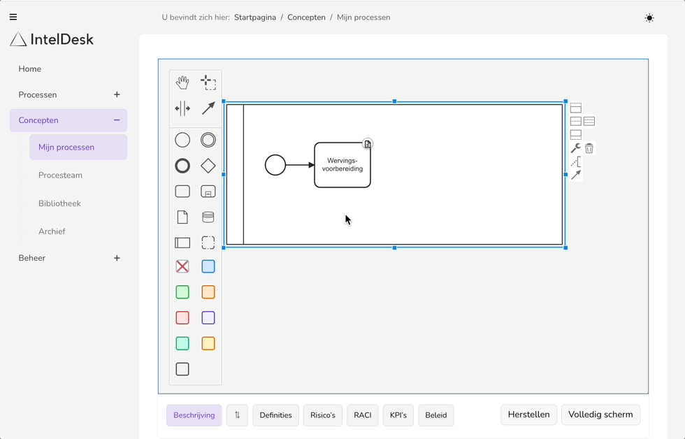 Ontwerp en beheer procesoverzichten met een intuïtieve drag-and-drop interface.